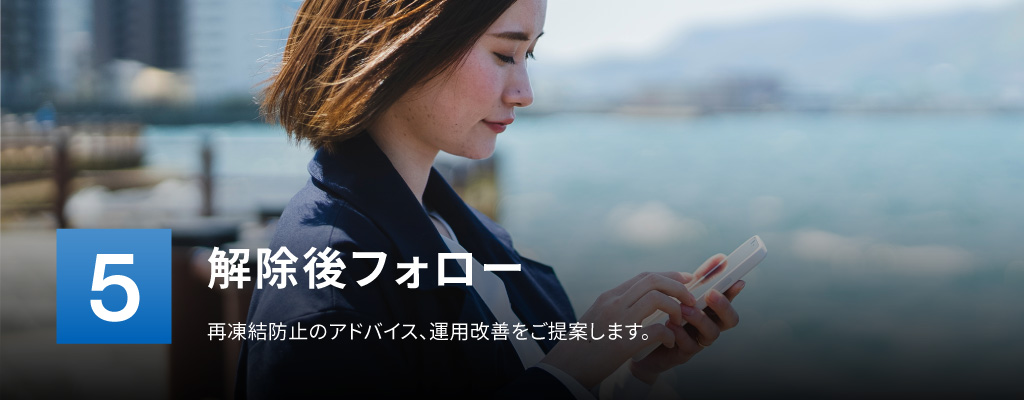 特に凍結後、何もしていない状態でご相談いただいたケースの解除確率が高いため、ご自身で何か行動される前に相談いただくことを強く推奨します。